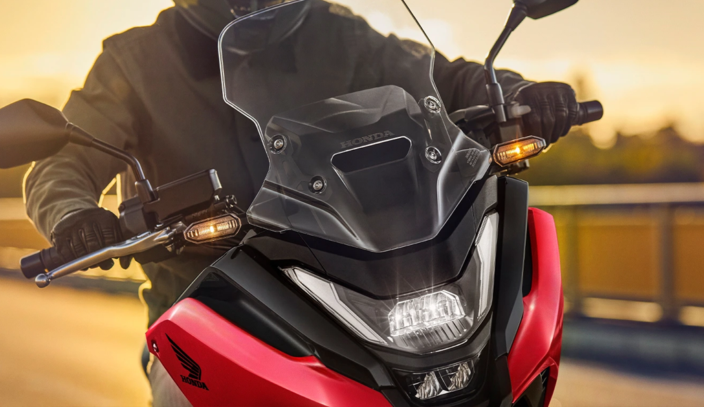 A Honda NC750X 2026 ganhou linhas mais elegantes e minimalistas, com carenagens redesenhadas e novo conjunto óptico em LED. O para-brisa redesenhado melhora a aerodinâmica e a proteção contra o vento, enquanto o assento de 802 mm de altura facilita o acesso ao solo, tornando a pilotagem mais acessível a diferentes estaturas.